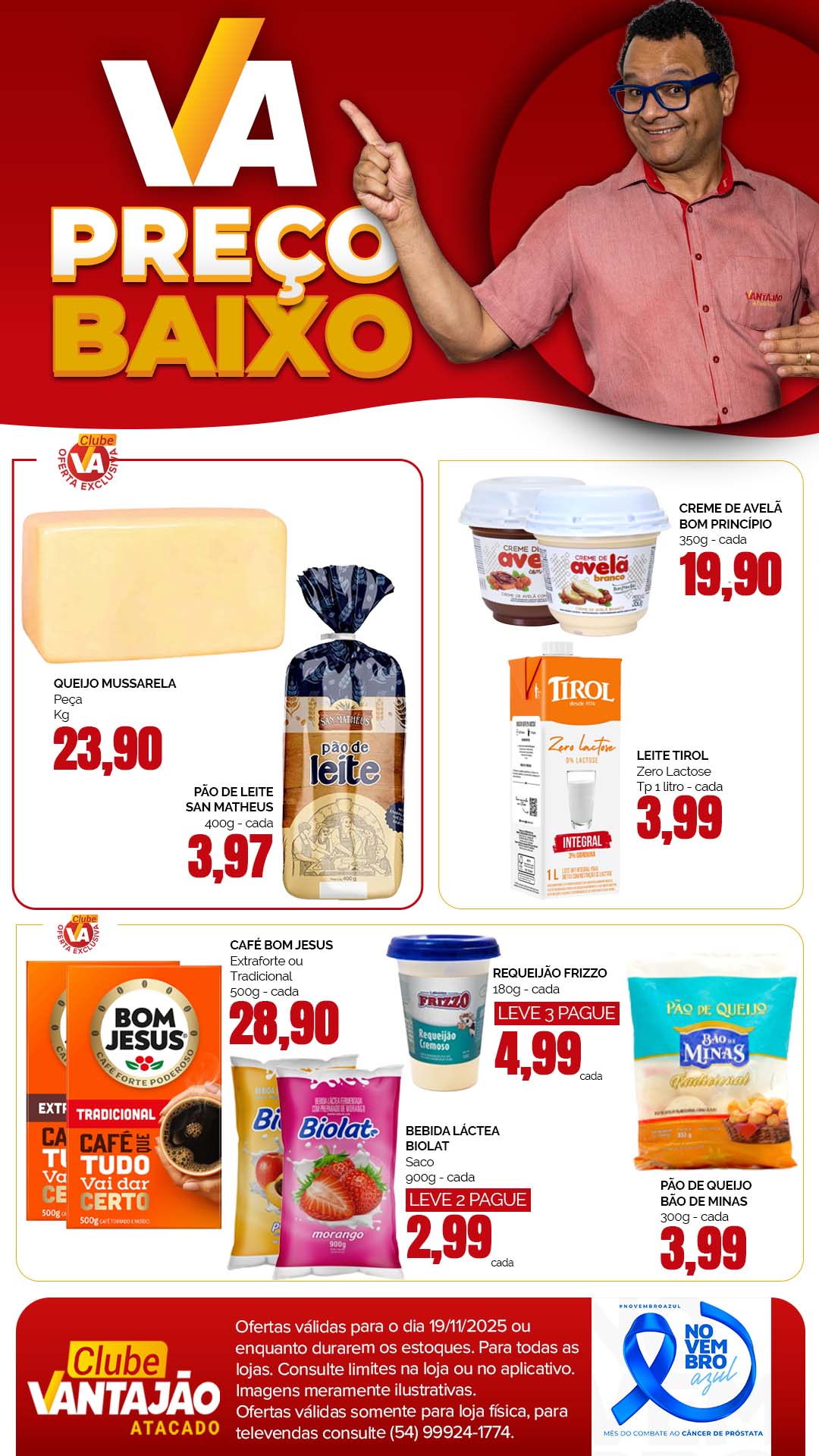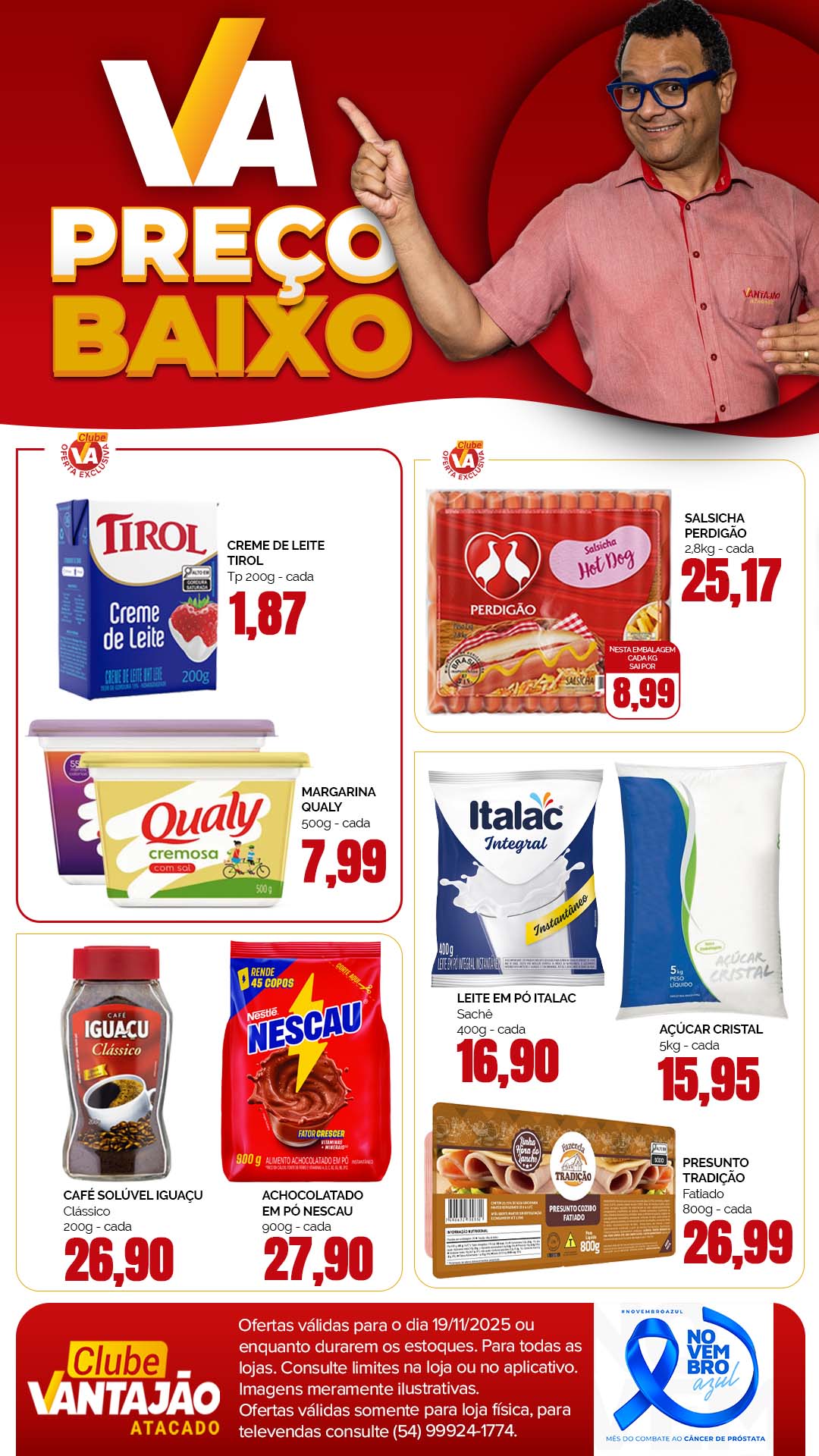 Para você que ama economizar, temos ofertas todos os dias! Pois se tem uma coisa que priorizamos por aqui é preço baixo. Isso se aplica a todos os nossos setores: mercearia, hortifrúti, bebidas, carnes, utilidades, higiene e limpeza.